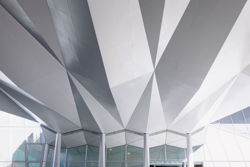 “The Toranomon Footbridge is a 20 m wide, 35 m span monocoque box girder bridge serving as both a pedestrian crossing and elevated green plaza. Designed for a dense seismic-prone urban site, it features a folded plate bottom flange for structural and aesthetic continuity. Its low static indeterminacy minimizes interaction with adjacent buildings of differing seismic responses. Innovative construction methods, seismic fail-safes, and precise welding ensured safety and durability. Exposed structural surfaces reduced maintenance, optimizing long-term life-cycle costs.”