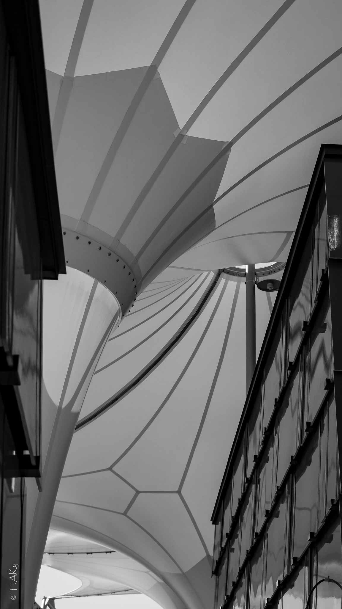 A single suspension membrane gently wraps thirteen boxes of varying sizes, creating spatial uniformity and visual identity. The 3-dimensional equilibrium including the steel structure and foundation is found through a graphical method of form-finding, achieving formal complexity with visual simplicity.